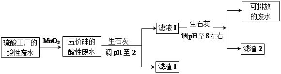 1、填空题 某硫酸工厂的酸性废水中砷(As)元素含量极高,为控制砷的排放,采用化学沉降法处理含砷废水,工艺流程如下:
