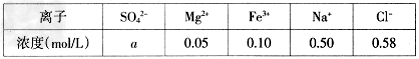 (3)?某地海水样品经Na2FeO4处理后,所含离子及其浓度如下表所示(H+和OH-未列出):