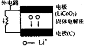 5、选择题 某新型二次锂离子电池结构如下图,电池内部是固体电解质,充电、放电时允许Li+在其间通过(图中电池内部“→”表示放电时Li+的迁移方向)。充电、放电时总反应可表示为:LiCoC2+6C