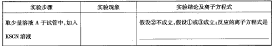 (2)推测A中可能含有的金属阳离子:①只有Fe3+;②只有Fe2+;③____。
