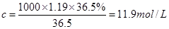 ①该浓盐酸中HCl的物质的量浓度为?mol/L。