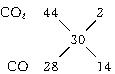 若反应后的气体密度在相同条件下为氢气的15倍时,混合气体的平均相对分子质量是30,由于产物中肯定有CO2,它的相对分子质量大于30,所以另一种气体的相对分子质量必小于30,另一种气体只能是CO(也就是说O2不可能有余),该混合气体的组成可用下法求得: