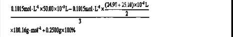 (4)为测定阿斯匹林中有效成分的含量,称取样品0.250 0 g ,准确加入浓度为0.1015 mol·L- NaOH溶液50.00 mL,煮沸60min。冷却后用浓度为0.1015 mol·L-1的HC1溶液返滴过量的NaOH,消耗HC1溶液记录如下: