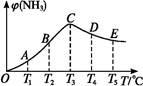 2NH3(g)。分别在同一时刻,不同温度下测定NH3的含量,然后绘制出如下图所示的曲线。