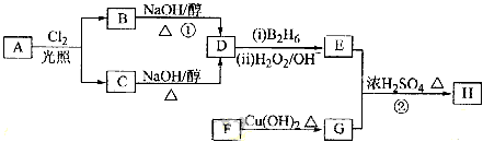 其中B为饱和化合物A的一氯取代产物,反应②只得到C1和C2两种互为同分异构体 的有机物,E分子中只有两种类型的氢。