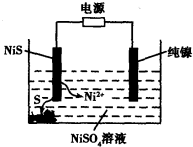 (3)工业上用硫化镍(NiS)作为电极材料冶炼镍。电解时,硫化镍中的硫元素以单质形态沉积在某电极附近,镍元素以Ni2+形态进入电解液中,如图所示。硫化镍与电源的____________(填“正极”或“负极”)相接。写出阳极的电极反应式________________。