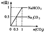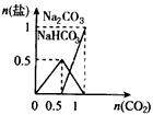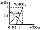 5、选择题 向含l mol NaOH的溶液中逐步通入CO2,能表示生成盐的物质的量的变化的是(横、纵坐标单位:mol)