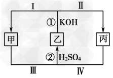 ①正极:__________________________________________; ②负极:__________________________________________。 (3)乙图中铝片与NaOH溶液反应的总化学方程式为______________________。某同学测得乙图中实验前铝片的质量是10g,实验后的质量是4.6g,则在实验过程中产生氢气的体积为?L(标况),转移电子的物质的量为?mol。 2、填空题 化学中有一种在同种元素之间发生电子转移的氧化还原反应,这种反应有时会因溶液酸碱性的变化而改变反应方向,如图所示,甲、乙、丙三种物质中含有同一种元素。 3、选择题 下图所示装置能够组成原电池,并且能产生明显电流的是(?) 4、填空题 依据氧化还原反应:2Ag+(aq)+Cu(s)==Cu2+(aq)+2Ag(s)设计的原电池如图所示。 5、选择题 关于下列各装置图的叙述不正确的是( ) |