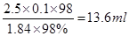 F.容量瓶不干燥 (4)从容量瓶中取该溶液40 mL,与5 mol/L的NaOH溶液?mL恰好完全反应,反应后溶液中的c(Na+)=?(忽略溶液混合过程中的体积变化) 参考答案:I.(1)28.6(2分) 本题解析:考查一定物质的量浓度溶液的配制及误差分析等。 本题难度:一般 4、选择题 由CO2、H2和CO组成的混合气在同温同压下与氮气的密度相同.则该混合气体中CO2、H2和CO的体积比可能为(?) 参考答案:C 本题解析:由于CO和氮气的相对分子质量相等,所以二者的密度也是相等的。因此只要满足CO2和氢气的平均相对分子质量是28即可,所以二者的体积之比是 本题难度:一般 5、选择题 已知某饱和溶液的①溶液的质量?②溶剂质量?③溶液体积?④溶质的摩尔质量?⑤溶质的溶解度?⑥溶液的密度。利用以上部分已知条件不可计算该溶液物质的量浓度的是(? ) 参考答案:D 本题解析:选项A中由①和②求出溶质的质量,其结果与④结合求出溶质的物质的量,由①和⑥推出溶液的体积,根据公式c= 本题难度:简单 |