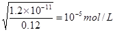 参考答案:D 本题解析:A、硫酸钡电离产生硫酸根离子和钡离子,a点时p(Ba2+)=-lgc(Ba2+)=4,则c(Ba2+)=10-4mol/L,p(SO42-)=-lgc(SO42-)=6,则c(SO42-)=10-6mol/L,所以该温度下,Ksp (BaSO4 )= c(Ba2+) c(SO42-)=1.0×10-10,错误;B、温度相同,硫酸钡的溶度积相同,错误;C、因为p(Ba2+)=-lgc(Ba2+),p(SO42-)=-lgc(SO42-)是减函数,数值越小,则对应的两种浓度越大,所以d点时c(Ba2+) c(SO42-)>1.0×10-10,则溶液为过饱和溶液,错误;D、c点时加入氯化钡溶液,则溶液中的钡离子浓度增大,p(Ba2+)减小,则溶解平衡逆向移动,硫酸根离子浓度减小,p(SO42-)增大,可由c点变到a点,正确,答案选D。 本题难度:一般 2、选择题  常温下,以下三种物质度积常数为:Ksp[Mg(OH)2]=1.2×10-11、Ksp(AgCl)=1.8×10-10、Ksp(Ag2CrO4)=8.3×10-9。下列说法正确的是 参考答案:D 本题解析:溶度积常数只与温度有关系,升高温度,溶度积常数增大,A、B不正确;选项C中根据溶度积常数可知,生成氯化银和铬酸银时需要银离子的浓度分别是 本题难度:一般 3、选择题  已知Ksp(AgCl)=1.56×10-10,Ksp(AgBr)=7.7×10-13 ,Ksp(Ag2CrO4)=9×10-11。某溶液中含有Cl-、Br-和CrO42-,浓度均为0.010mol/L,向该溶液中逐滴加入0.010mol/L的AgNO3溶液时,三种阴离子产生沉淀的先后顺序为  参考答案:C 本题解析:设Cl-、Br-、CrO42-刚开始沉淀时,银离子的浓度分别为x mol、y mol、z mol,则根据Ksp可得:  本题难度:一般 4、计算题  氢氧化镁难溶于水,但它所溶解的那一部分在溶液中完全电离。t ℃时,某饱和氢氧化镁溶液的pH=11,若不考虑KW值的变化,则该温度下的氢氧化镁的溶解度是。 参考答案:0.002 9 g 本题解析:pH=11,则c(OH-)="0.001" mol·L-1,所以,c〔Mg(OH)2〕="0.000" 5 mol·L-1,即1 000 g水中可溶解0.000 5 mol的Mg(OH)2,即S="0.000" 5×58 g="0.002" 9 g。 本题难度:简单 5、选择题  已知H2CrO4是弱酸,在一饱和Ag2CrO4水溶液(含有Ag2CrO4固体)中,添加下列试剂能使c(CrO42-)减少的是  A. NH3   参考答案:BD 本题解析: 本题难度:一般 |