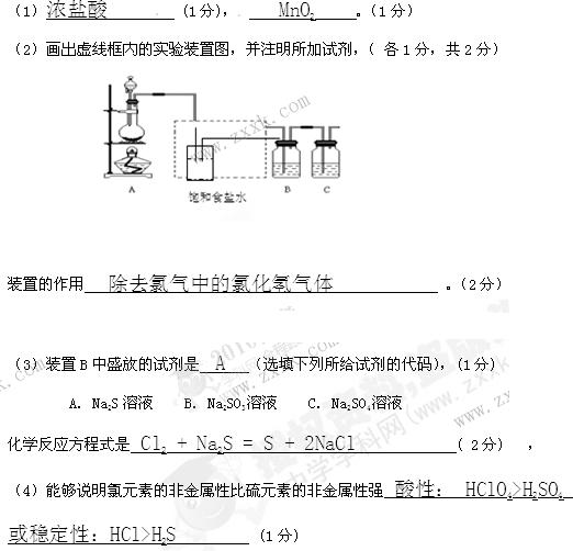 属单质硫(S)是淡黄色固体粉末,难溶于水。为了验证氯元素的非金属性比硫元素的非金属性强,某化学实验小组设计了如下实验,请回答下列问题: