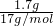 B.常温常压下,1.7?g?NH3的物质的量为n=