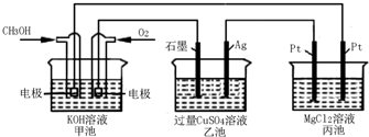 D、甲池中根据电极反应:O2+2H2O+4e-=4OH-,消耗280mL(标准状况下0.0125mol)O2,则转移电子0.05mol,根据丙装置中,在阳极上是氢离子放电,所以镁离子和氢氧根离子之间反应生成氢氧化镁,理论上最多产生氢氧化镁0.05mol×58g/mol=1.45g固体,故D错误.