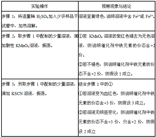 (2)①假设假设1:催化剂中铁元素的价态全部为+3价;