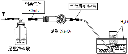 3、选择题 把3体积的NO2气体,依次通过下列3个分别装有①NaHCO3饱和溶液,②浓H2SO4,③Na2O2的装置后,用排水法把残留气体收集到集气瓶中,集气瓶内气体应是(同温同压下测定)