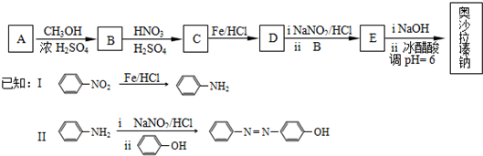 参考答案:实验室用A和乙酸酐[化学式为(CH3CO)2O]发生取代反应合成阿司匹林,A中羟基上氢原子被CH3CO-取代生成乙酰水杨酸,所以A是邻羟基苯甲酸,A和甲醇发生酯化反应生成邻羟基苯甲酸甲酯,邻羟基苯甲酸甲酯和硝酸发生取代反应生成含有硝基、酚羟基和酯基的C,C和铁、HCl发生取代反应生成D,F中的硝基被氨基取代生成含有氨基、硝基和酚羟基的D,D和亚硝酸钠、HCl、B反应生成E,根据提供信息知,苯环上酚羟基对位的氢原子被取代,所以D的结构简式为:
