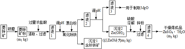 CH3COO-+Cu2O↓+3H2O参考答案:B 本题解析:A.向酸性KMnO4溶液中,在反应物中不能出现OH-,错误。B.醋酸是弱电解质,不能拆,错误;C.向FeBr2溶液中通入足量Cl2:2Fe2++2Br- +Cl2=2Fe3++2Cl- + Br2,错误。D正确。 本题难度:一般 3、选择题 下列离子方程式书写正确的是 参考答案:B 本题解析:离子方程式正误判断——注意“七查”。1.“一查”是否符合客观事实,2.“二查”“反应条件”“连接符号”“↑”“↓”是否使用恰当,3.“三查”拆分是否正确,4.“四查”是否“漏写”离子反应,5.“五查”是否符合三个守恒(1)质量守恒(2)电荷守恒(3)得失电子守恒,6.“六查”是否符合离子配比,7.“七查”反应物的“量”——过量、少量、足量等。A、碳酸钡为难溶物,应用化学式表示,错误;B、往硫酸铜溶液中滴加氢氧化钡溶液:Ba2++2OH-+Cu2++SO42-= BaSO4↓+Cu(OH)2↓,正确;C、一水合氨为弱电解质,应用化学式表示,错误;D、铁与稀盐酸反应生成氯化亚铁和氢气,不符合客观事实,错误。 本题难度:一般 4、简答题 硫酸锌可作为食品锌强化剂的原料.工业上常用菱锌矿生产硫酸锌,菱锌矿的主要成分是ZnCO3,并含少量的Fe2O3、FeCO3MgO、CaO等,生产工艺流程示意如下: