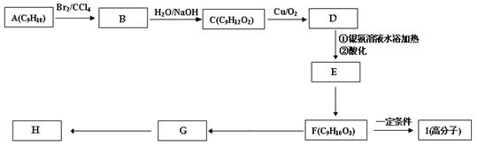 5、填空题 若A~E均为单官能团有机物,它们之间有如下转化关系: 烯烃A的密度是相同条件下氧气密度的1.75倍;结构分析表明A没有顺反异构体;A的核磁共振氢谱共有两组峰,峰面积之比为1:3.B在一定条件下能与NaOH反应;D与NaHCO3反应放出无色无味的气体;E是一种有水果香气的无色液体,广泛存在于香蕉、葡萄、菠萝等水果以及啤酒花中,是一种重要的香料. (1)D的结构简式为______ (2)B在一定条件下变为A的化学方程式为______. (3)A→C的反应类型______ (4)A与X互为同分异构体,它们具有相同官能团.X经过下述变化可以生成J,J能脱水缩聚成高分子化合物K.