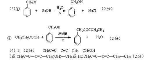 (4)分子中有6个碳原子在一条直线上说明含有2个碳碳三键,变化碳碳三键的位置和羟基的位置,可得三种同分异构体。