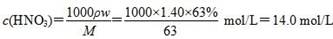 B.该浓硝酸中HNO3的物质的量浓度是14.0 mol/L