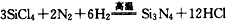 (4)Si3N4; 3SiO2 + 2N2 + 6C = Si3N4 + 6CO