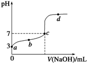 ![]() 3、选择题 取浓度相同的NaOH和HCl溶液,以3∶2?体积比相混合,所得溶液的pH?等于12,则原溶液的浓度为 4、简答题 常温下某强酸溶液pH=a,强碱溶液pH=b,已知a+b=12,酸碱溶液混合pH=7,求酸溶液体积V(酸)和碱溶液体积V(碱)的关系______. 5、填空题 (Ⅰ)常温下,将某一元酸HA(甲、乙、丙、丁代表不同的一元酸)和NaOH溶液等体积混合,两种溶液的物质的量浓度和混合溶液的pH如下表所示: