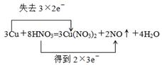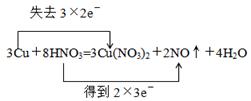 本题解析:(1)根据反应的化学方程式可知,在反应中铜的化合价从0价升高到+2价,失去个电子。硝酸中氮元素的化合价从+5价降低到+2价,得到3个电子,所以用双线桥标出反应中电子转移的情况是