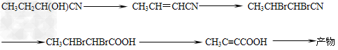 (5)2–氰基–2–丁烯酸[CH3CH=C (CN)COOH]是合成某种医疗手术用粘合剂的重要物质。写出以丙醛(CH3CH2CHO)和必要的化学试剂来制备2–氰基–2–丁烯酸。合成路线流程图示例如下: