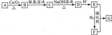 5、填空题 某芳香族化合物A的分子式为C8H9OBr,其苯环上的一氯代物只有两种。A、B、C、D、E、F、G七种物质的转化关系如下图所示(图中某些生成物已略去):