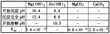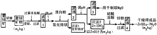 4、填空题 硫酸锌可作为食品锌强化剂的原料,工业上常用菱锌矿生产硫酸锌,菱锌矿的主要成分是ZnCO3,并含少量的Fe2O3、FeCO3、MgO、CaO等,生产工艺流程图如下