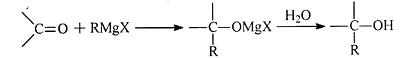 生成的卤代烃基镁与具有羰基结构的化合物(醛、酮等)发生反应,再水解就能合成各种指定结构的醇: