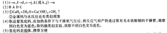 3、实验题 氢化钙固体是登山运动员常用的能源提供剂。某兴趣小组长拟选用如下装置制备氢化钙。