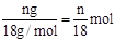 (2)m滴水的质量为n g,则1滴水所含水分子的个数为?