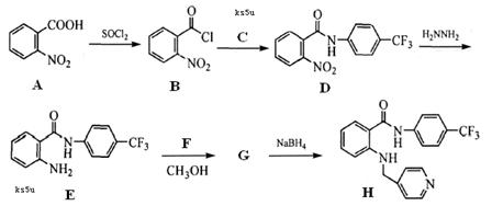 1、填空题 (14分)新一代药物H具有良好的抗肿瘤活性,其合成路线如下: