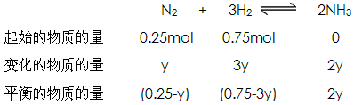 解得:N2:x=0.25mol H2:1mol-0.25mol=0.75mol