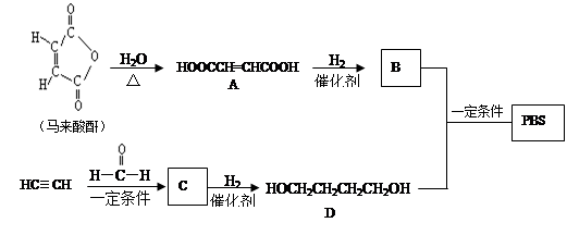 3、填空题 (14分)PBS是一种可降解的聚酯类高分子材料,可由马来酸酐等原料经下列路线合成: