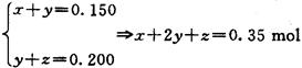 (3)设其中一份中n(Cu)= x mol,n(Cu2O)=" y" mol,n(CuO)=" z" mol,