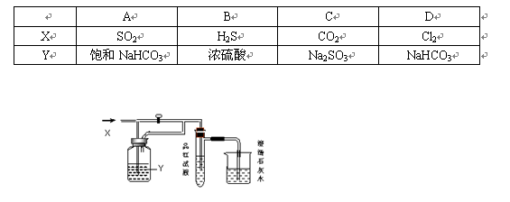 本题解析:该气体可以是品红褪色,与Y反应后不能是品红褪色。A符合。D中氯气也能漂白,但加热后不恢复原色。