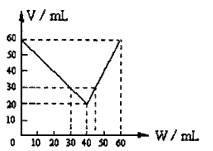 60mL进行实验,反应前混合气体中H2所占的体积为W,反应后气体总体积为V,其相互关系如下图所示。上述气体的体积均是在同温同压下测定的,单位为mL。由此可知x等于