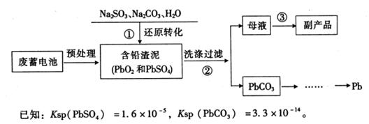 (5)根据化学流程中的信息,步骤①中发生氧化还原反应的氧化剂为PbO2,还原剂为Na2SO3,所以化学方程式为:PbO2+Na2SO3 +H2O = PbSO4+2NaOH或PbO2 + Na2SO3 + Na2CO3 + H2O = PbCO3 + Na2SO4 + 2NaOH