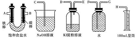 (2)利用甲烷燃料电池及下图所示的装置完成电解饱和食盐水的实验,要求测定产生的氢气的体积,并检验氯气的氧化性。