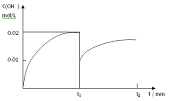 ② 在t1时刻再加入H2O配成2L溶液,于t2时刻重新达到平衡,请在坐标系中画出t1~t2时间内OH-浓度随时间变化的曲线。