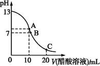 c(H+),故A项错误;B点时溶液为中性,