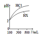 (3)体积均为100 mL、pH均为2的盐酸与一元酸HX,加水稀释过程中pH与溶液体积的关系如图所示,