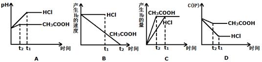 ⑤产生等量H2所需时间A>B ⑥产生等量H2,盐酸和醋酸一定都有剩余