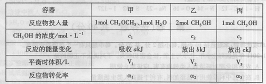 选择题 在温度相同的3个密闭容器中,按不同方式投入反应物,保持恒温、恒压,发生反应CH3OCH3(g)+H2O(g) 2CH3OH(g);△H=37kJ·mol-1,测得反应达到平衡时的有关数据如下: