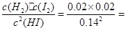 2HI(g)的平衡常数K的值为 。