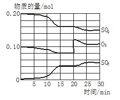 (3)反应进行至20 min时,氧气的浓度突然增大,而SO2的浓度逐渐减小,三氧化硫的浓度逐渐增大,所以改变的条件是增大氧气的浓度;根据图像可知,10 min到15 min时,物质的浓度变化量增大,即反应速率加快,所以改变的条件是使用了催化剂或改变了压强,答案选ab。