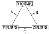 填空题 X、Y、Z三种短周期元素,它们的原子序数之和为16。X、Y、Z三种元素常见单质在常温下都是无色气体,在适当条件下可发生如右图所示的变化: