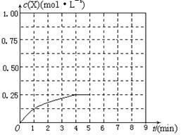 ④在其他条件不变的情况下,将甲容器的体积压缩到1 L,若在第8min达到新的平衡时A2的总转化率为75%,请在下图中画出第5min 到新平衡时X的物质的量浓度的变化曲线。